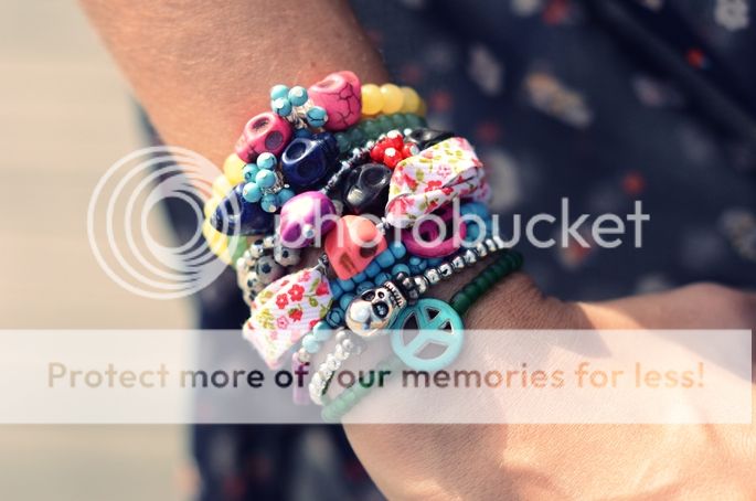 Tive uma leve inspiração para fazer esse post, ao visitar o Coisas de Diva. Bom, achei legal e resolvi pesquisar algumas imagens de pulseiras no nosso lindo we♥it e achei essa aí de cima, muito fofinha, não? Tá, enfim, vou mostrar dois tutoriais de pulseiras que o Coisas de Diva ensinou.